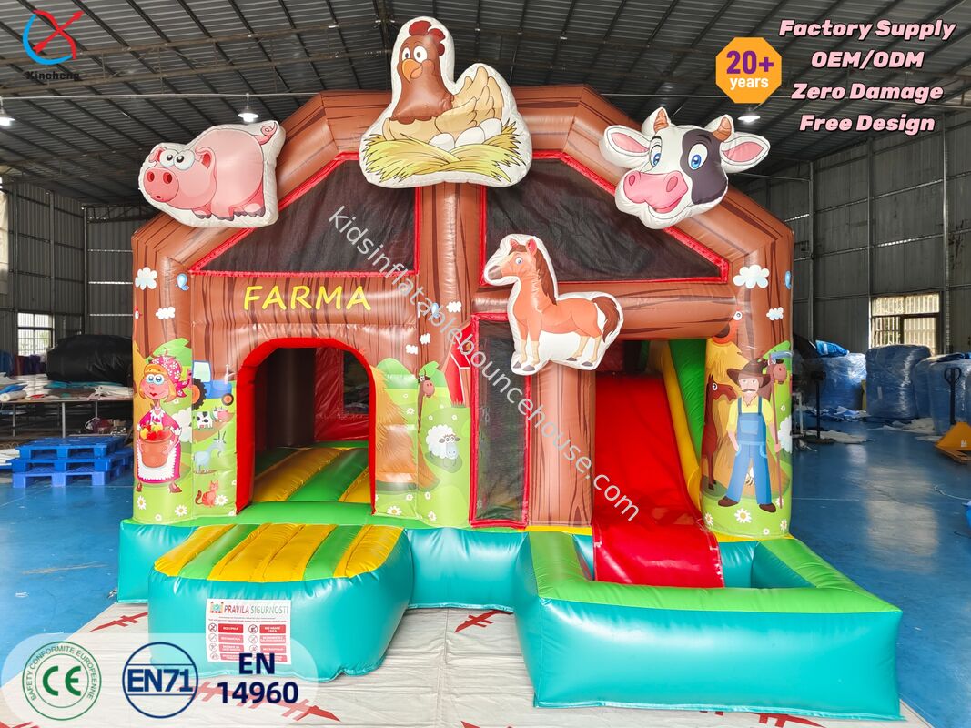 Kombinasi rumah balon tiup bertema pertanian berkualitas tinggi yang dirancang untuk bisnis penyewaan dan acara khusus. Unit hiburan yang semarak ini menggabungkan aktivitas memantul dan meluncur untuk kesenangan maksimal.
